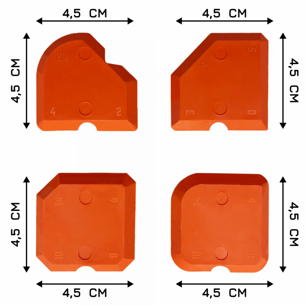 Набор шпателей из четырех эластичных шпателей для формирования швов подходит для большинства типов герметиков, таких как: силиконовый герметик для пола, силикон, акрил, смола, затирка и многое другое. Имеют более 10 различных краев. Шпатели различной формы и с разными углами позволяют выравнивать и формировать швы и угловые стыки.